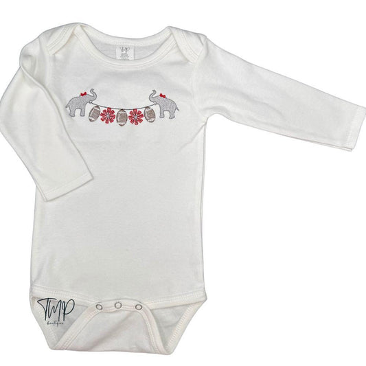 Embroidered Elephant Football Bodysuit: Game Day Outfit, Long Sleeve