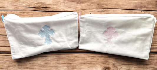 Embroidered Cross Canvas Pouch – Baptism Gift, Cosmetic Bag