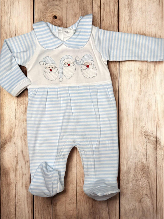 Baby Boy Christmas Romper, Blue Stripe Santa Claus Footie, Holiday Outfit, Infant Boy Christmas, Newborn Coming Home Outfit,Baby Shower Gift