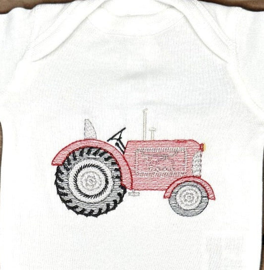 Embroidered Red Tractor Baby Coverall, Personalized Farm Outfit