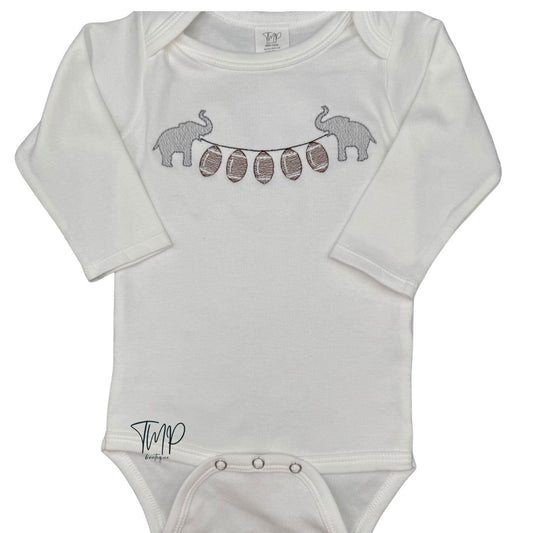 Embroidered Elephant Football Bodysuit: Game Day Outfit, Long Sleeve