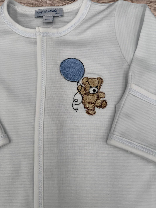Blue Balloon Bear Baby Coverall: Embroidered Cotton Coming Home Outfit
