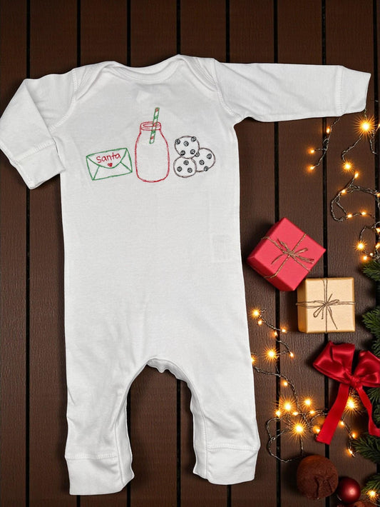 Embroidered Christmas Romper: Milk & Cookies Santa Outfit