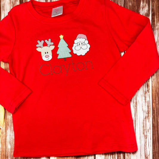 Boys Christmas Reindeer Shirt: Embroidered Red Long Sleeve