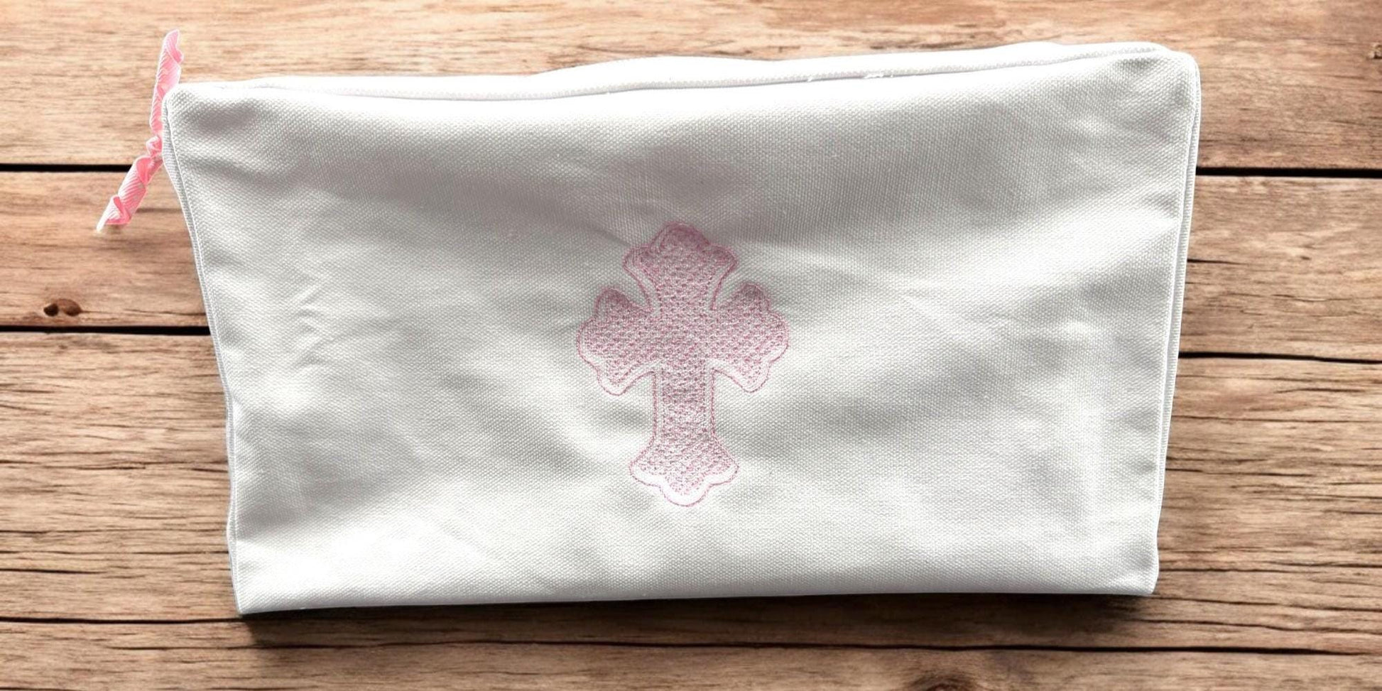 Embroidered Cross Canvas Pouch – Baptism Gift, Cosmetic Bag